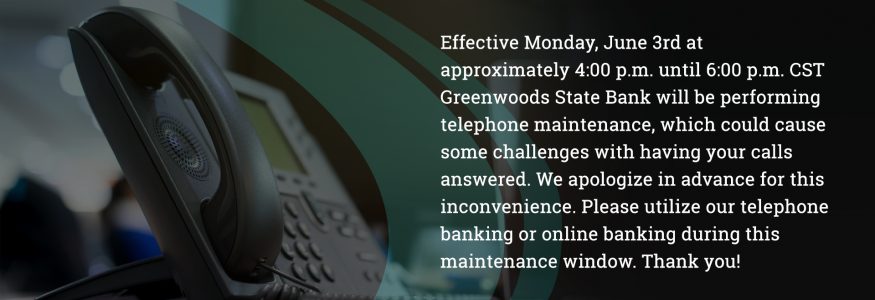 Telephone maintenance will be performed Monday, June 3rd from 4-6pm